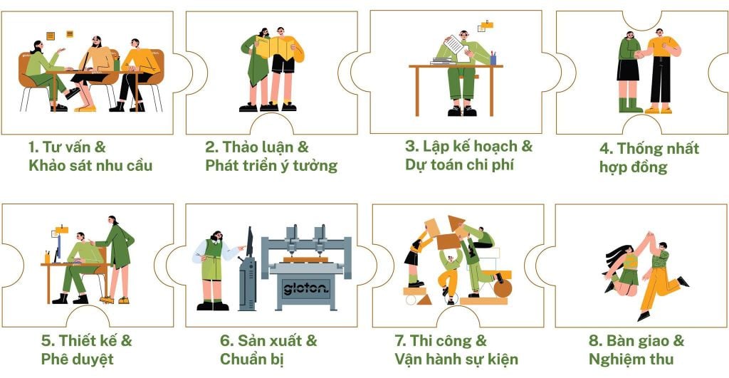 Với đội ngũ giàu kinh nghiệm, Gloton luôn tư vấn và thiết kế concept độc đáo, áp dụng các kỹ thuật lắp ghép thông minh (không cần khung sắt hay keo dán), đảm bảo tính thẩm mỹ, an toàn và dễ dàng thi công.